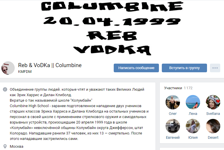 Скриншот описания одной из популярных групп о «Колумбайне»