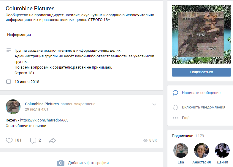Число подписчиков действующих «колумбайновских» групп сравнимо с их количеством у заблокированных предшественников