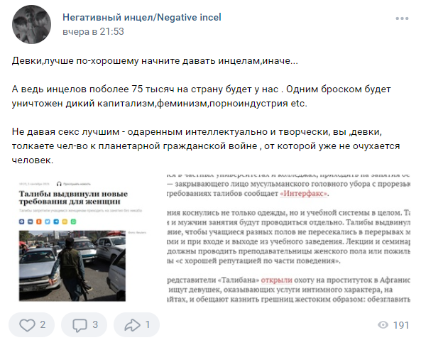 Российские инцелы берут пример с «Талибана»