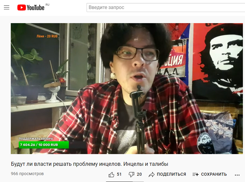 Алексей Поднебесный в размещенном три недели назад видео под названием «Будут ли власти решать проблему инцелов. Инцелы и талибы»
